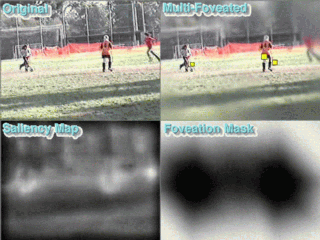 ![]() | We have developed a new method for automatically finding regions of interest in static images or video clips, using a neurobiological model of visual attention. This model computes a topographic saliency map which indicates how conspicuous every location in the input image is, based on the responses from simulated neurons in primary visual cortex, sensitive to color, intensity, oriented edges, flicker and oriented motion. The method is applied as a front-end filter for image and video compression, where a spatially-variable blur is applied to the input images prior to compression. Image locations determined interesting (or salient) by the attention model receive no or little blur, while image locations increasingly farther from those hot spots are increasingly blurred. Locations which are more highly blurred will be compressed more efficiently and hence will yield a smaller overall compressed file size. To the extent that the algorithm indeed automatically marked as hot spots regions that human observers would find interesting, the blur around those regions should be tolerable when viewing the resulting clips. Details may be found on our Saliency-based Video Compression page. Papers describing the results have appeared in the IEEE Seventh International Symposium on Signal Processing and its Applications, the SPIE conference on Human Vision and Electronic Imaging, and the IEEE Transactions on Image Processing. |