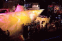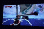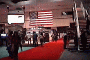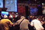 | The Nintendo and Sony booths can be seen below, with aerial views of heavy traffic and gaming stations. While both consoles were designed to appeal to the serious gamer, the approach taken by each was dramatically different. PlayStation had more of a lounge scene setting, equipped with large double-sided projection screens on clear glass panels, glowing plastic sofas and satellite speakers behind the sofas for the full gaming experience of the showcased games. Nintendo, on the opposite end, had several intimate hidden coves with only two essential things needed to play the showcased game: a large flat-screen and the gaming device dedicated to the showcased game. Both consoles provided representatives to answer questions and included periodic games to entice visitors. |