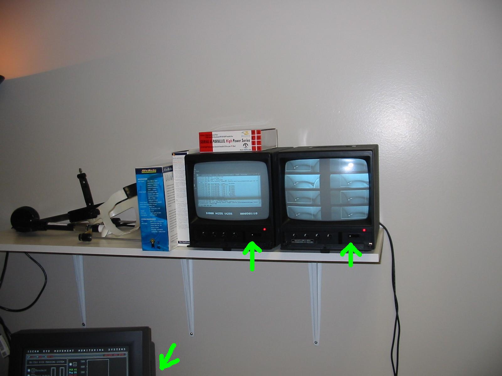 infrared light source and turn off all three monitors (scene, eye and