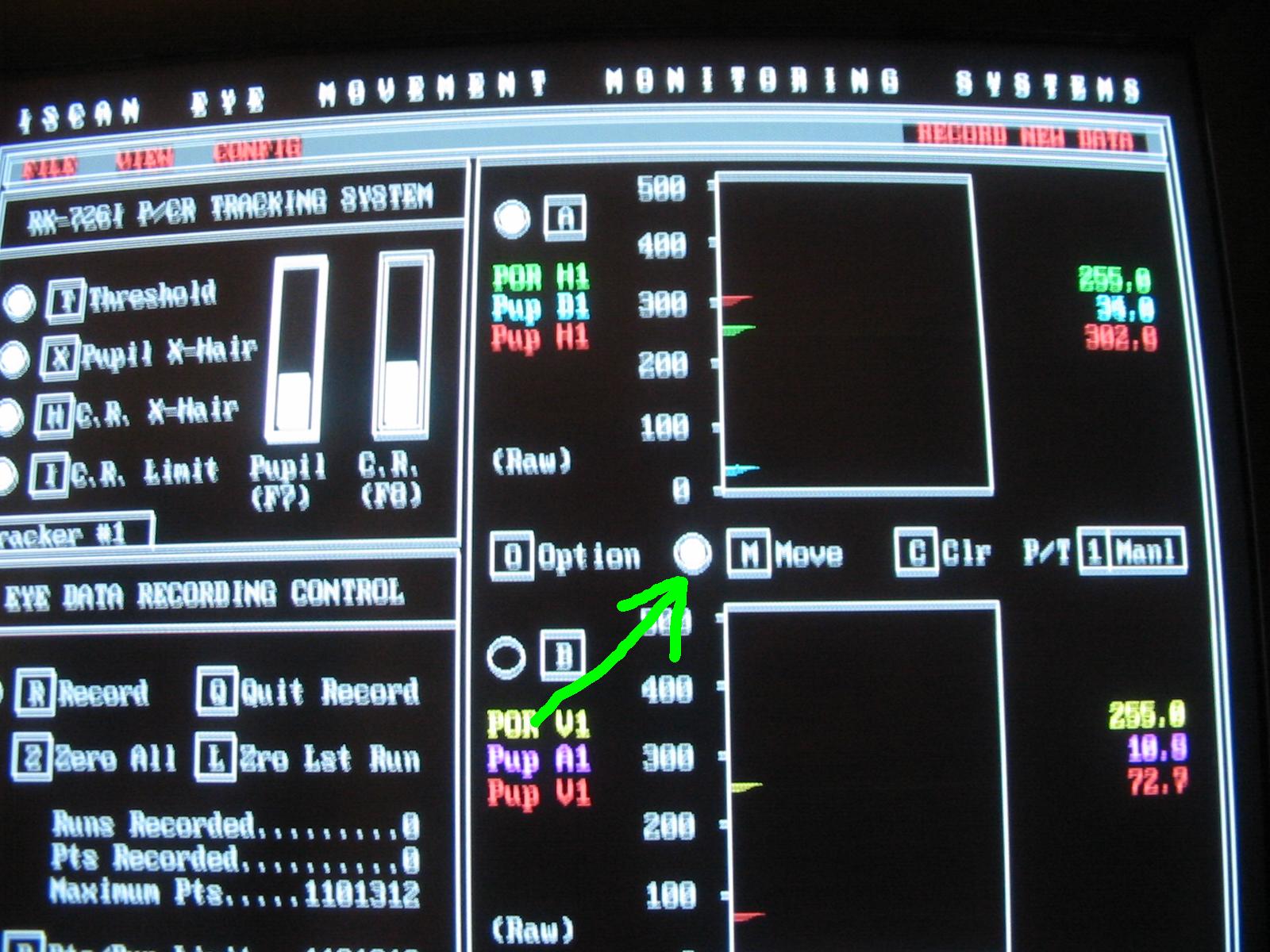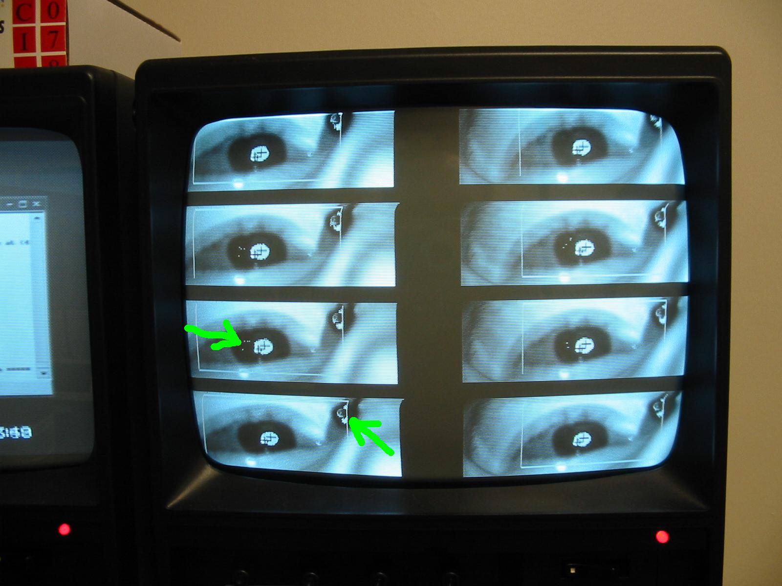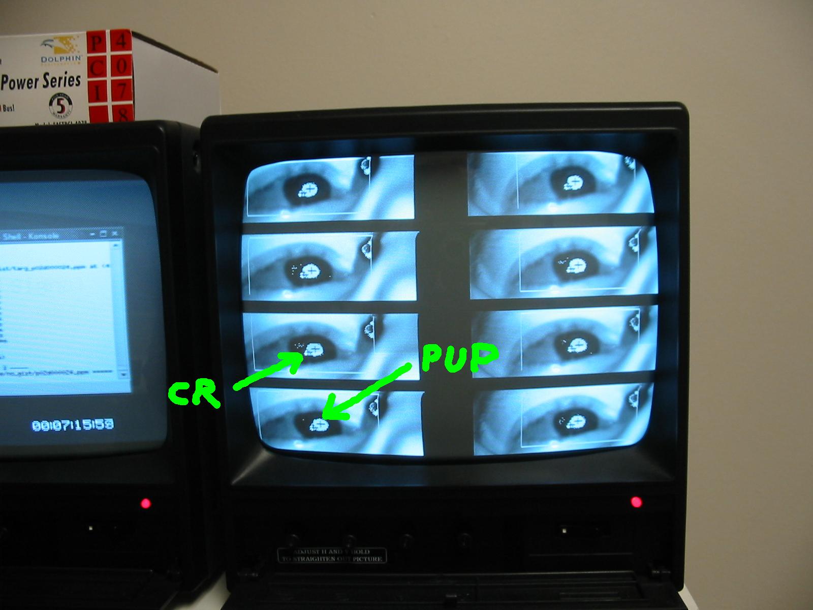 pupil and corneal reflection on the eye monitor, reliable cross