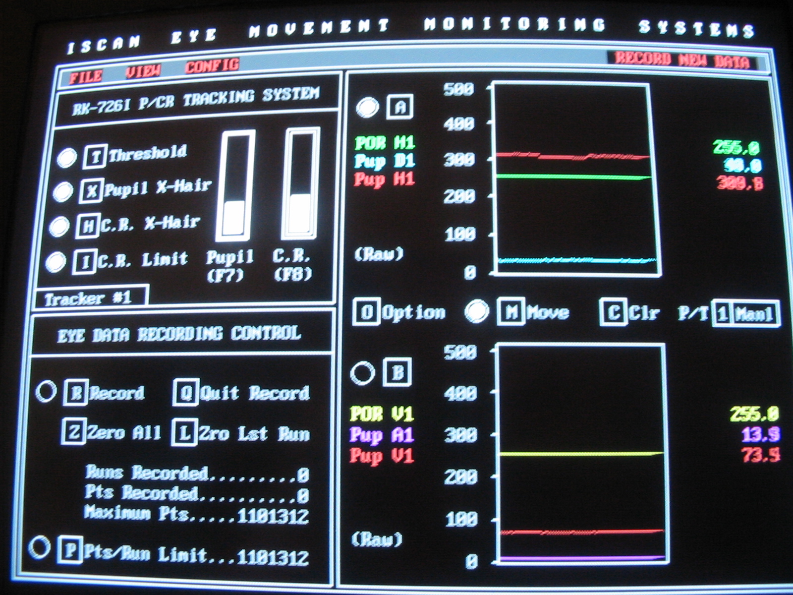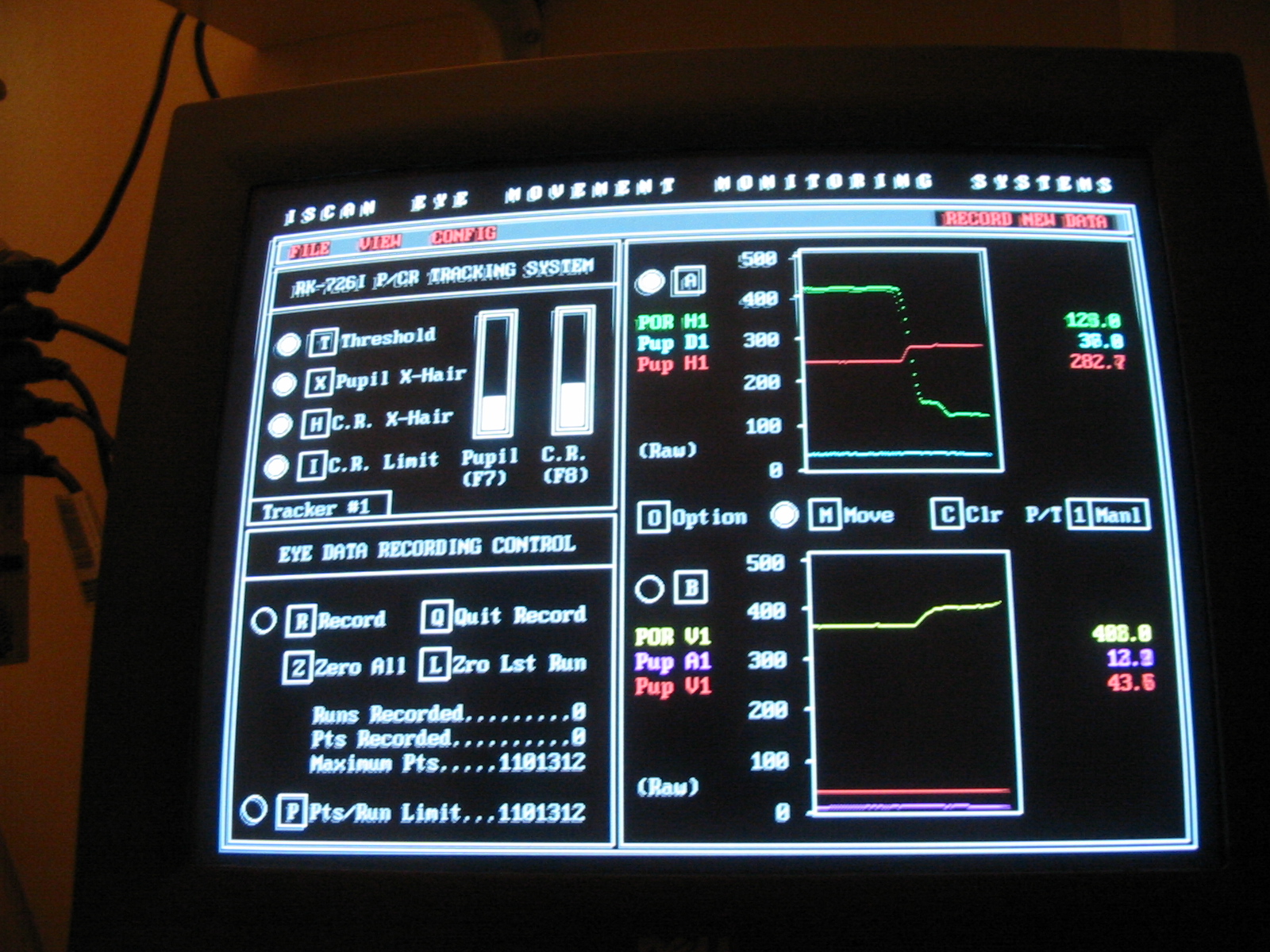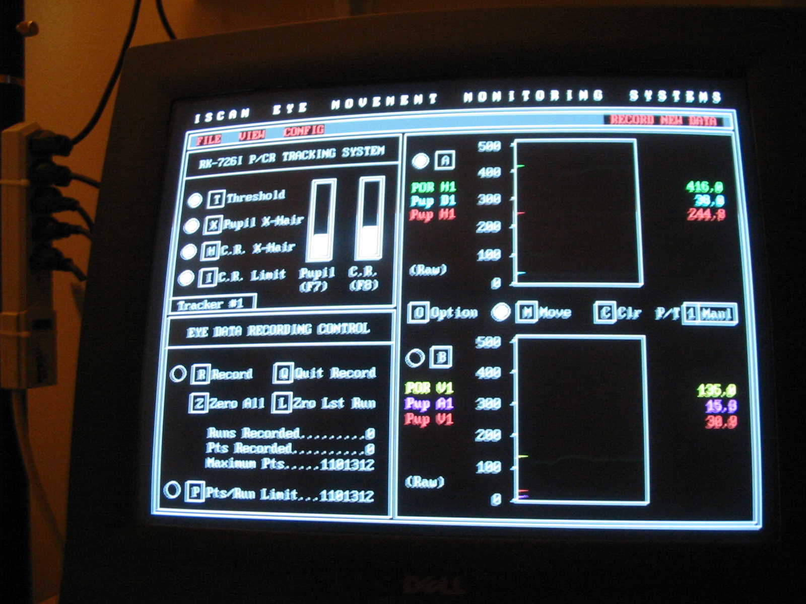 pupil and corneal reflection on the eye monitor, reliable cross