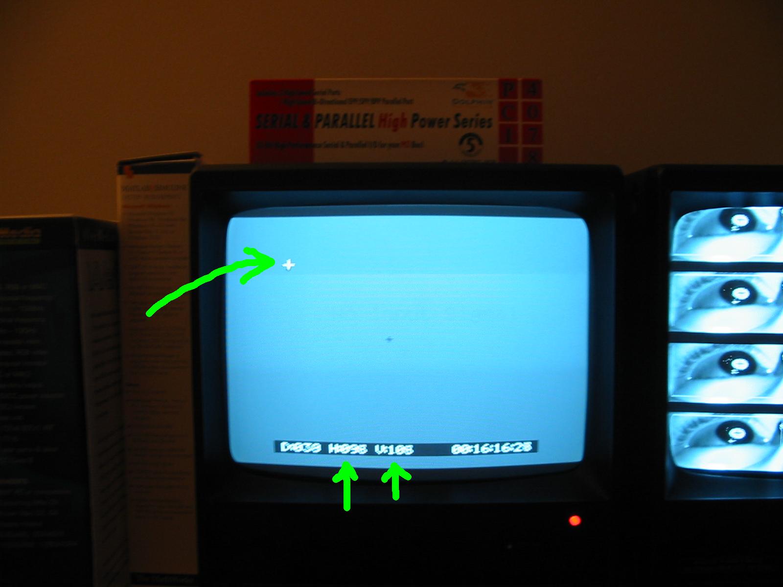 setup, hooked up to keyboard and mouse, to the monitor, to the serial
