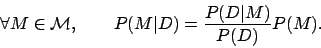 over the hypotheses or models M in a model space. Given such a prior distribution of beliefs, the fundamental effect of a new data observation D on the observer is to change the prior distribution {P(M)} (for all models M in the model space) into the posterior distribution {P(M|D)} via Bayes' theorem, whereby: