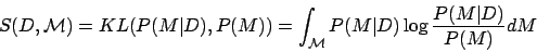 In this framework, the new data observation D carries no surprise if it leaves the observer's beliefs unaffected, that is, if the posterior is identical to the prior; conversely, D is surprising if the posterior distribution resulting from observing D significantly differs from the prior distribution. Therefore we formally measure surprise elicited by quantifying the distance (or dissimilarity) between the posterior and prior distributions. This is best done using the relative entropy or Kullback-Leibler (KL) divergence. Thus, surprise is defined by the average of the log-odd ratio: